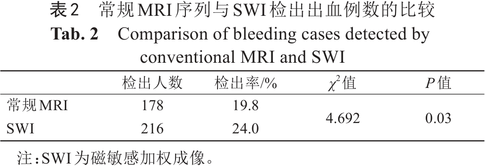 Tab. 2  Comparison of bleeding cases detected by conventional MRI and SWI