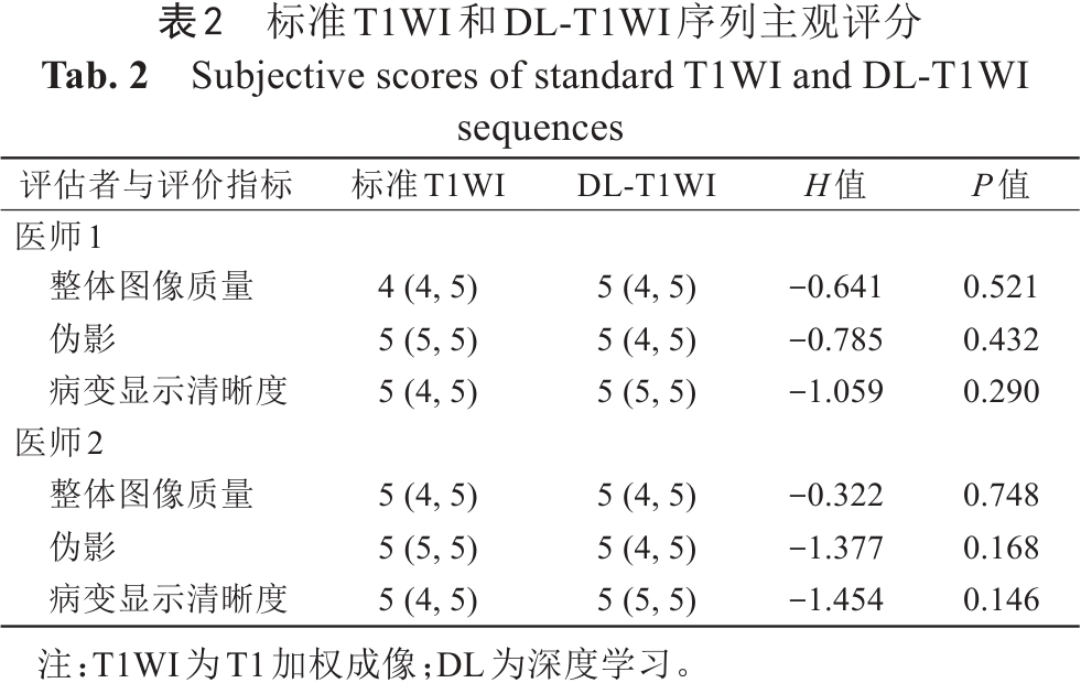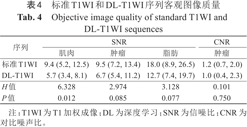 表4  标准T1WI和DL-T1WI序列客观图像质量