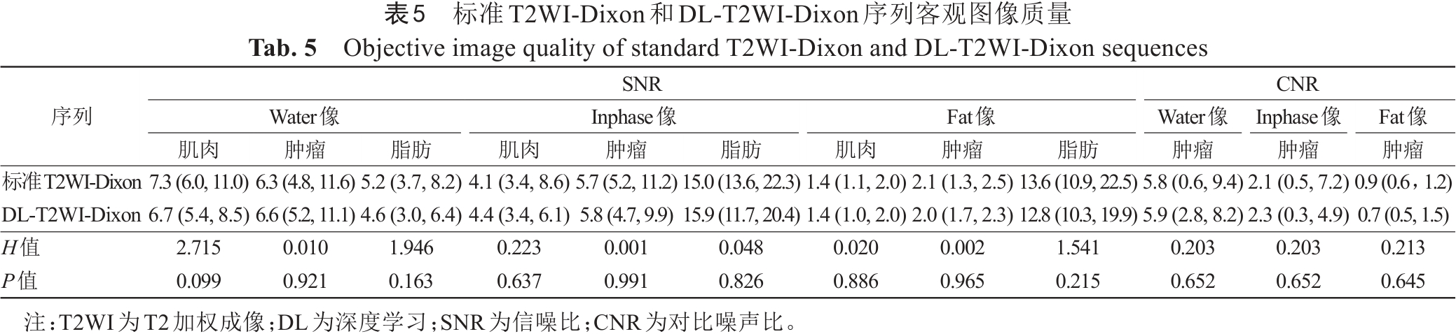 表5  标准T2WI-Dixon和DL-T2WI-Dixon序列客观图像质量