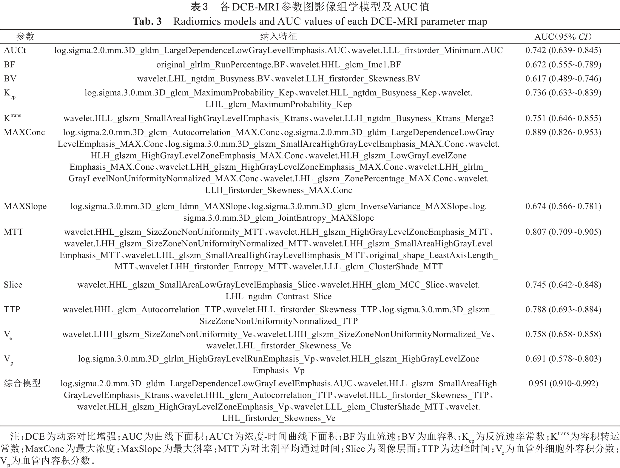Tab. 3  Radiomics models and AUC values of each DCE-MRI parameter map