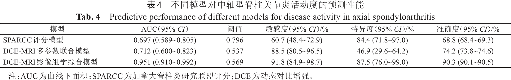 基于DCE-MRI多参数影像组学模型分析中轴型脊柱关节炎炎症活动性的初步研究