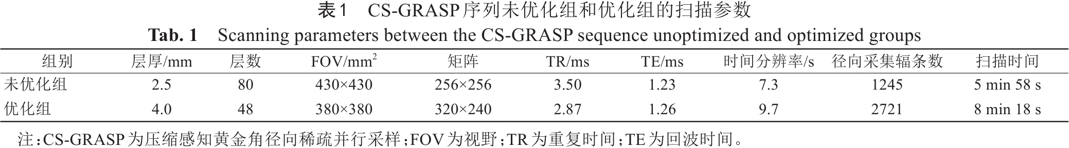 Tab. 1  Scanning parameters between the CS-GRASP sequence unoptimized and optimized groups