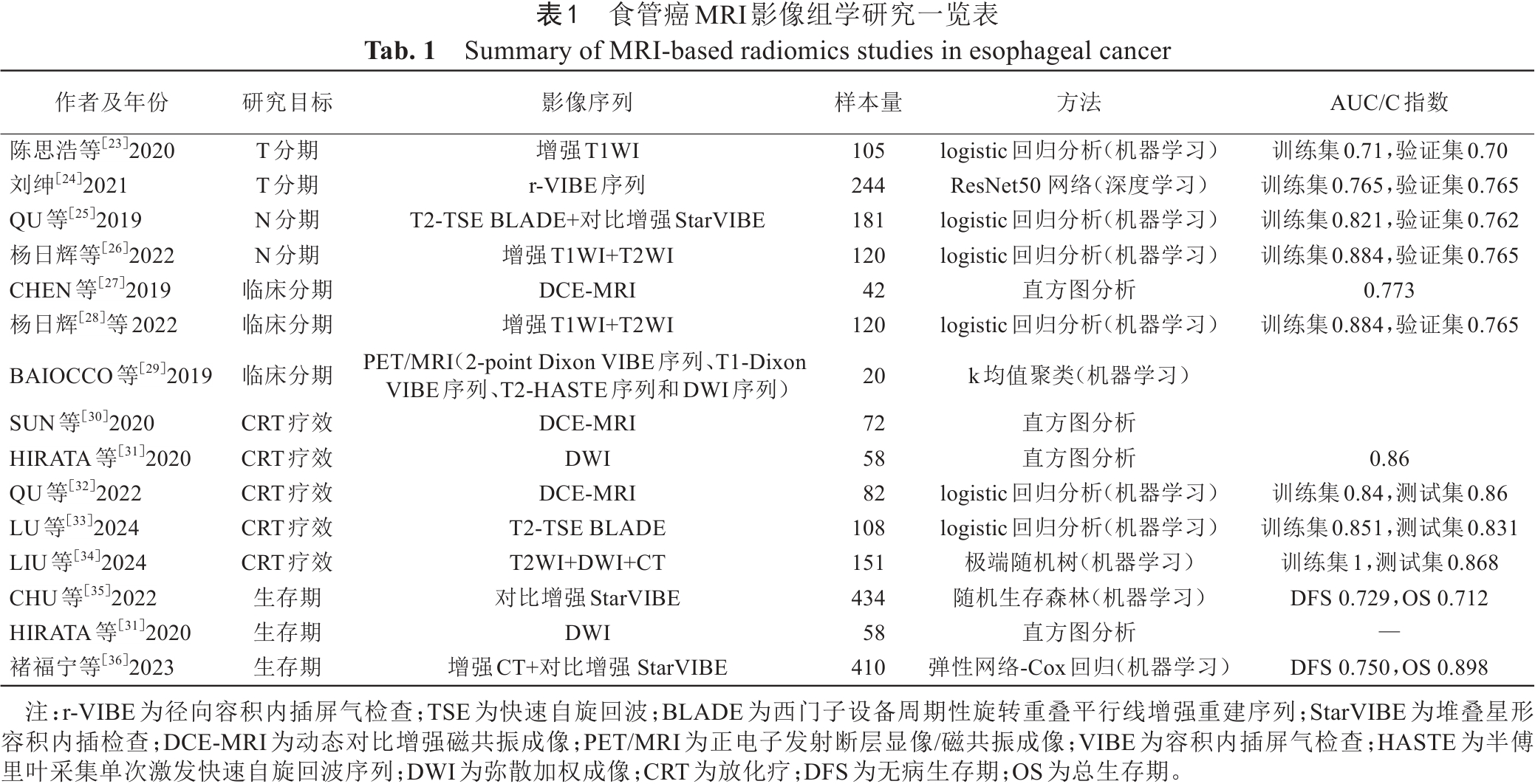Tab. 1  Summary of MRI-based radiomics studies in esophageal cancer
