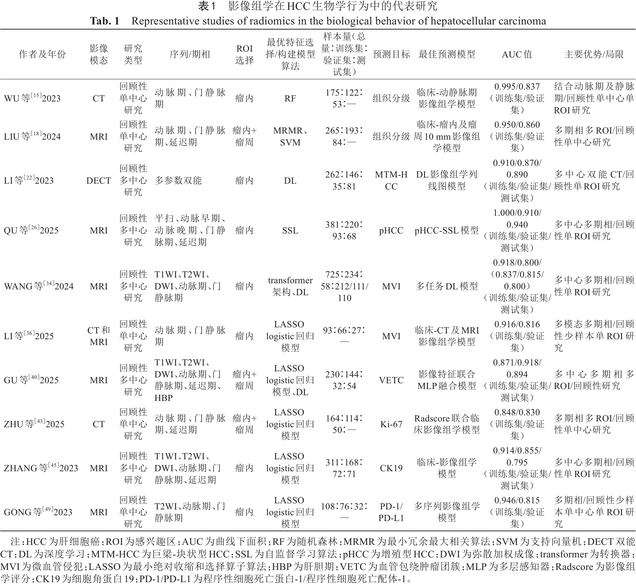 Tab. 1  Representative studies of radiomics in the biological behavior of hepatocellular carcinoma