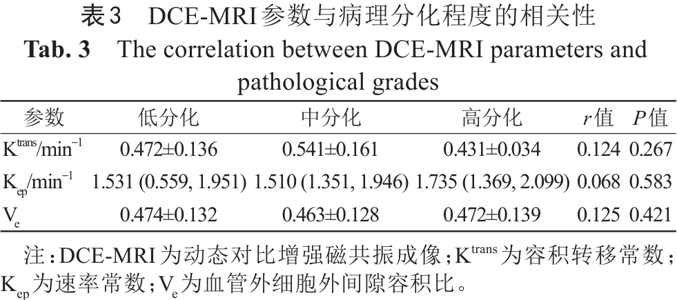 2.2 病灶DCE-MRI定量参数与病理分化程度的相关性