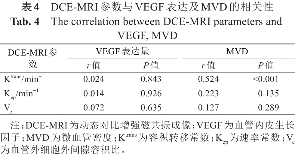 Tab. 4  The correlation between DCE-MRI parameters and VEGF, MVD
