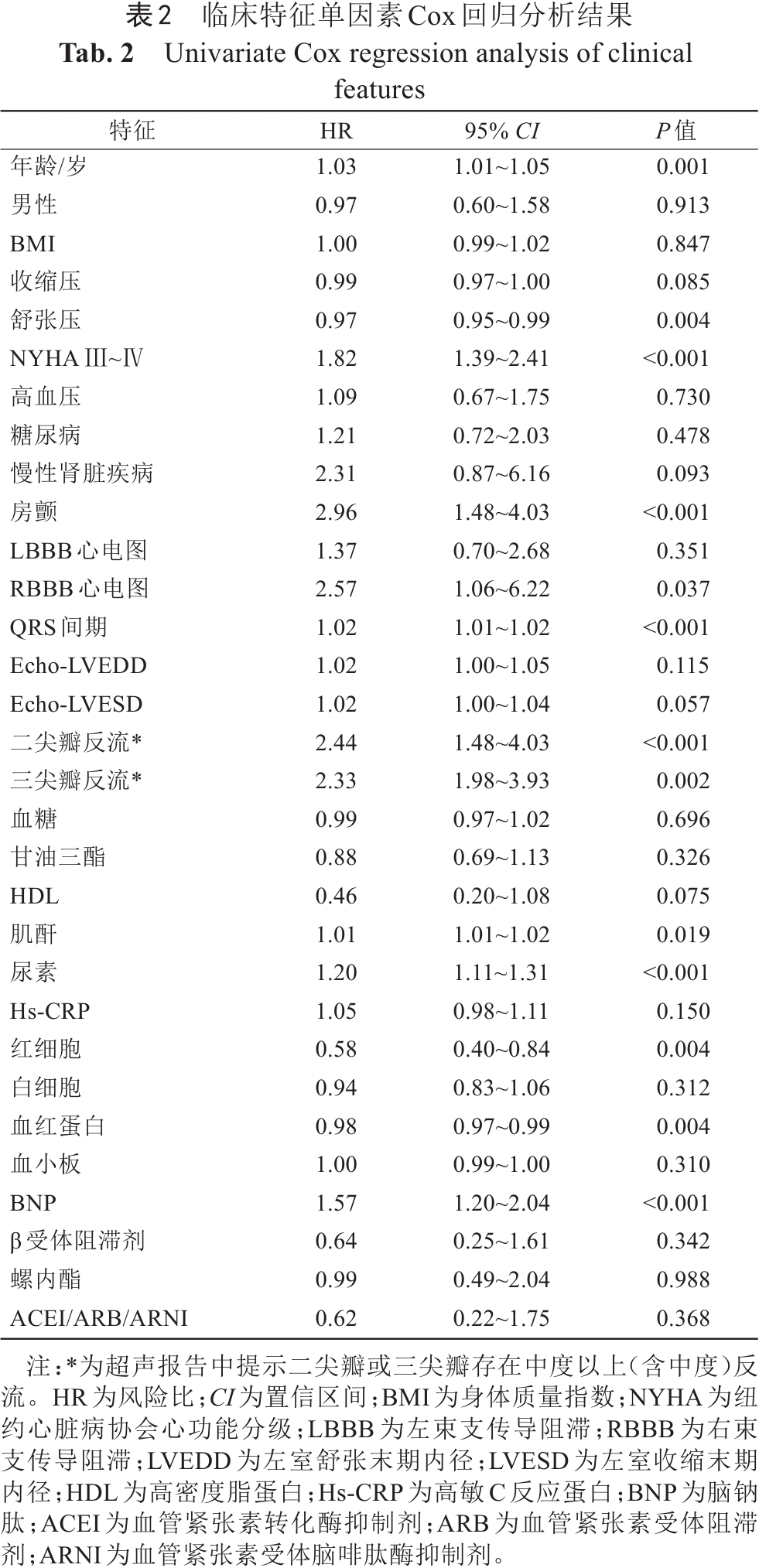 Tab. 2  Univariate Cox regression analysis of clinical features
