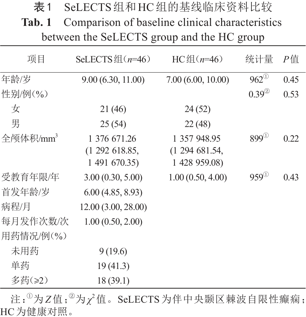 SeLECTS组及HC组排除标准:(1)合并其他神经系统疾病或精神障碍;(2)有神经外科手术史、颅脑损伤史、中枢神经系统感染史、脑血管意外或围产期脑损伤;(3)MRI扫描中头动平移超过3 mm或头部旋转超过3°。