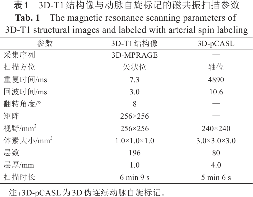 Tab. 1  The magnetic resonance scanning parameters of 3D-T1 structural images and labeled with arterial spin labeling