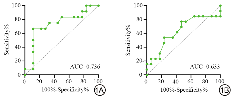 Fig. 1  ROC curves for the predictive value of IEE VASARI total score for Ki-67 proliferation index (1A) and WHO grade (1B). ROC: receiver operating characteristic; IEE: intracranial extraventricular ependymoma; VASARI: visually accessible Rembrandt images; AUC : area under the curve.