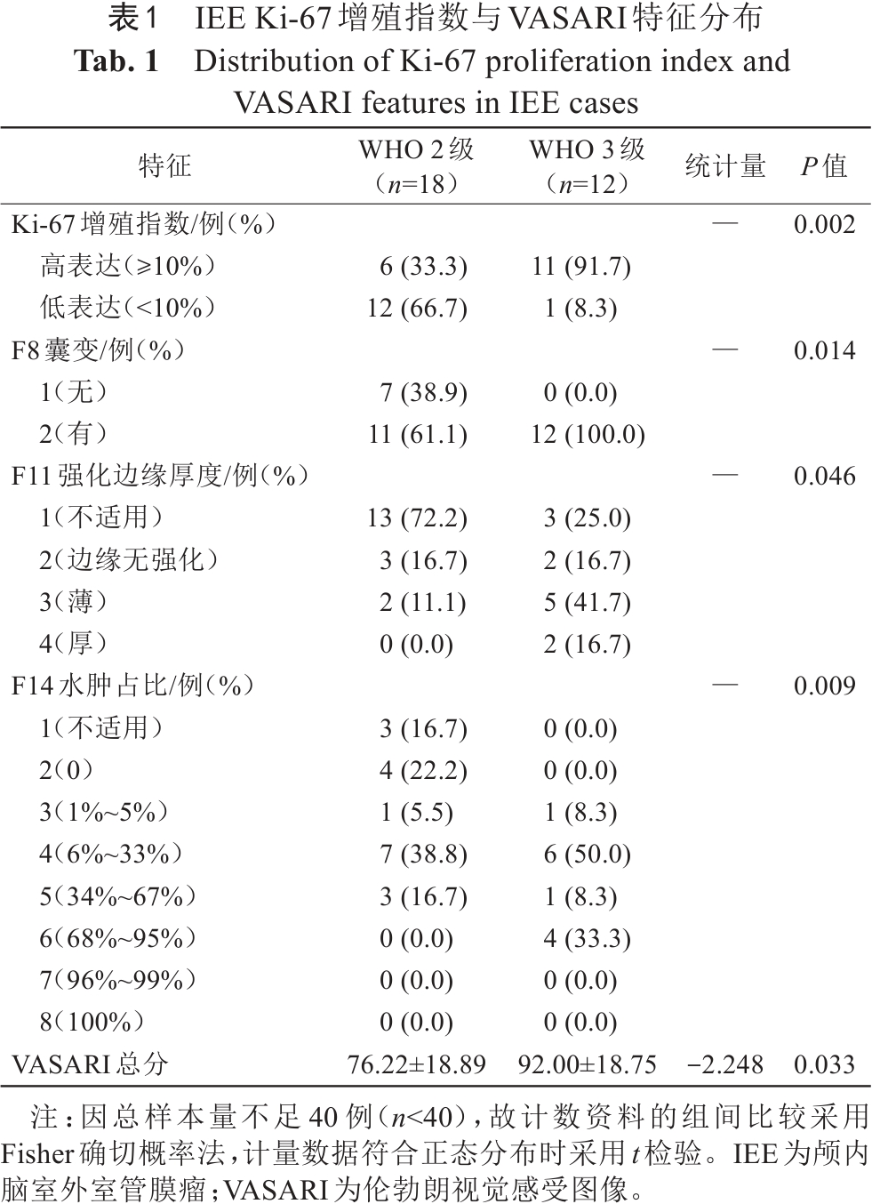 Tab. 1  Distribution of Ki-67 proliferation index and VASARI features in IEE cases