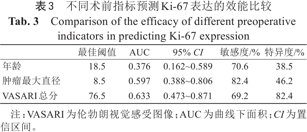 Tab. 3  Comparison of the efficacy of different preoperative indicators in predicting Ki-67 expression