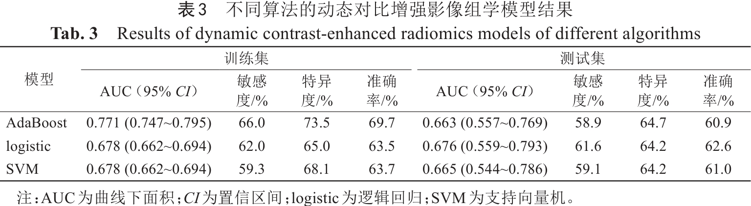 Tab. 3  Results of dynamic contrast-enhanced radiomics models of different algorithms