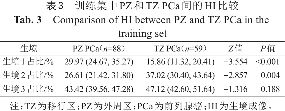 Tab. 3  Comparison of HI between PZ and TZ PCa in the training set