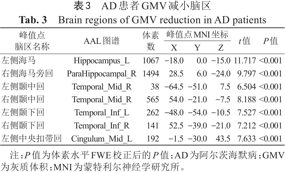 Tab. 3  Brain regions of GMV reduction in AD patients