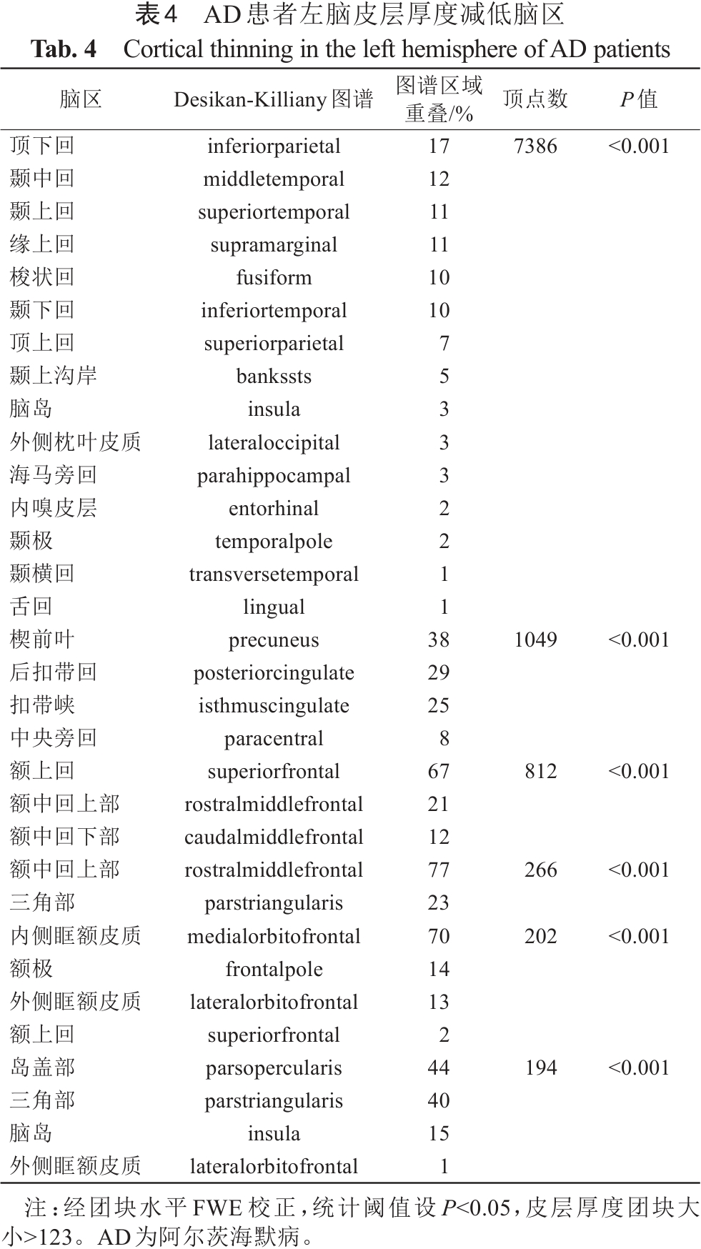 Tab. 4  Cortical thinning in the left hemisphere of AD patients