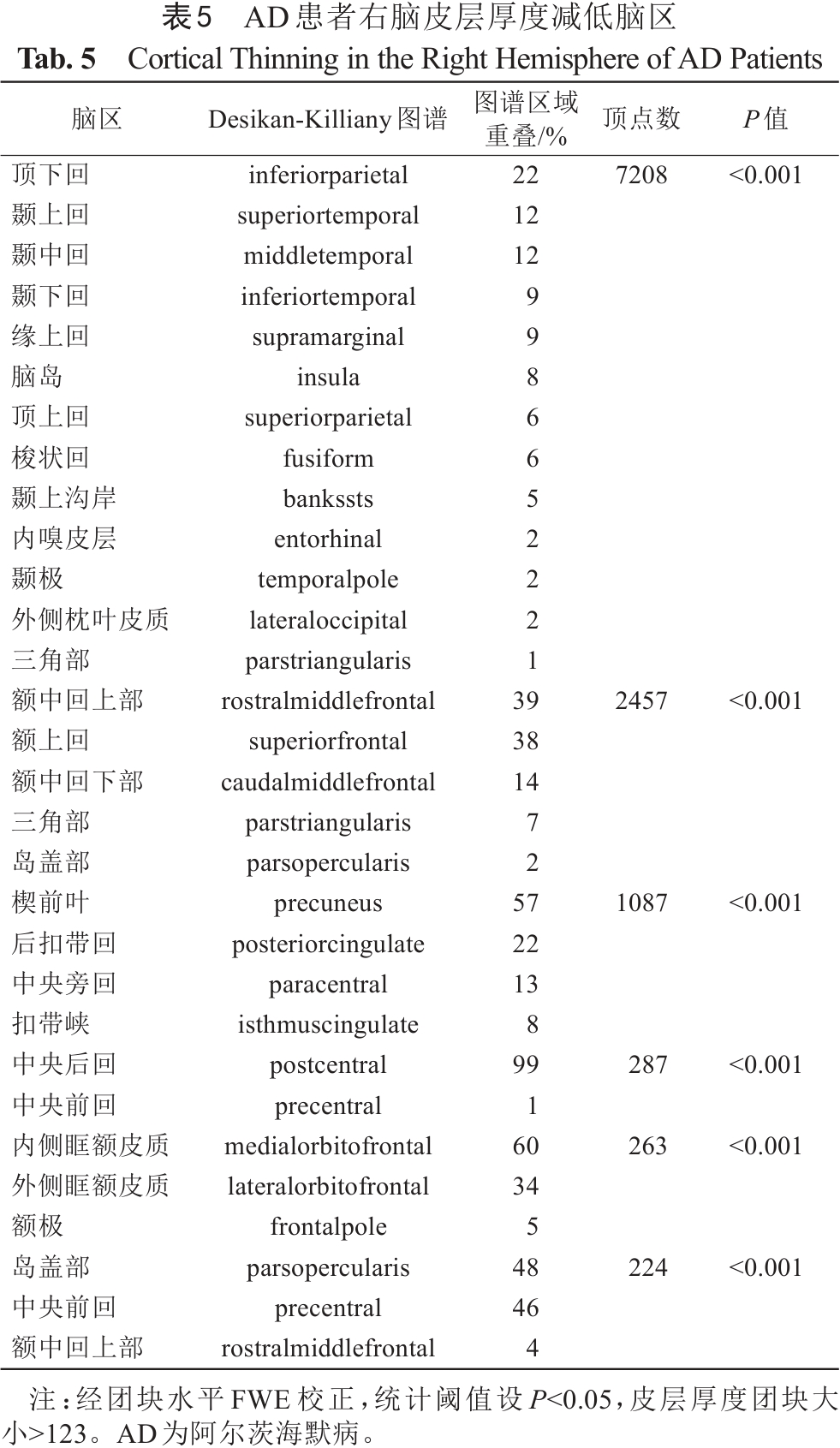 Tab. 5  Cortical Thinning in the Right Hemisphere of AD Patients
