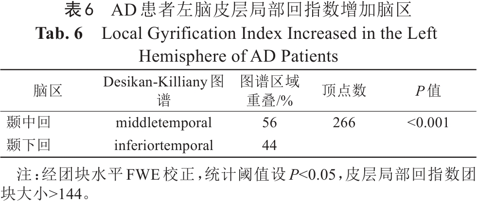 Tab. 6  Local Gyrification Index Increased in the Left Hemisphere of AD Patients