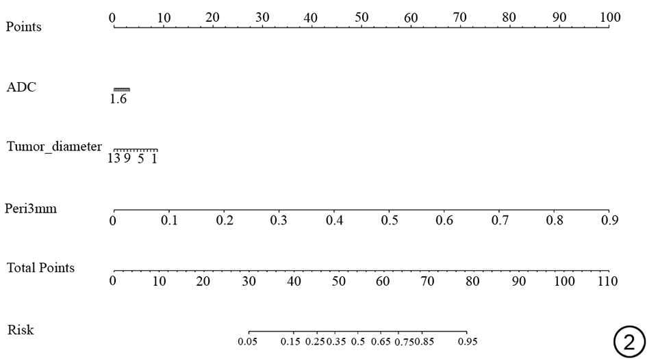 Fig. 2  Radiomics nomogram of the combined model for predicting the LVSI status of endometrial carcinoma. LVSI: lymphovascular space invasion; ADC: apparent diffusion coefficient; Peri3mm: the 3 mm peritumoral radiomics.