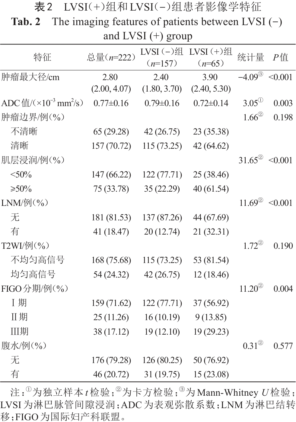 Tab. 2  The imaging features of patients between LVSI (-) and LVSI (+) group