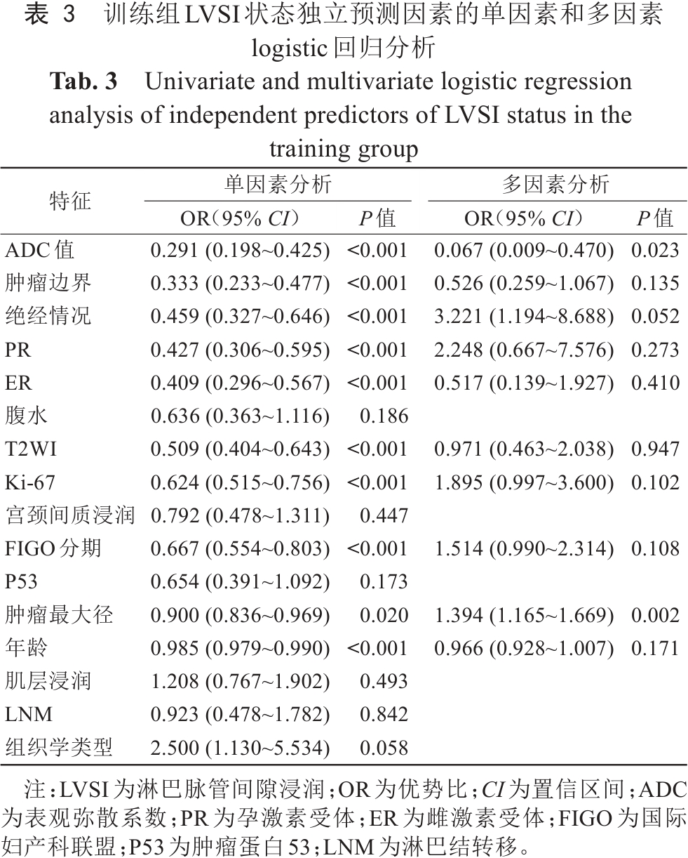 Tab. 3  Univariate and multivariate logistic regression analysis of independent predictors of LVSI status in the training group