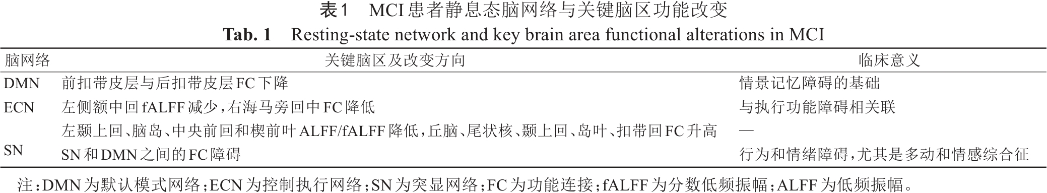 Tab. 1  Resting-state network and key brain area functional alterations in MCI