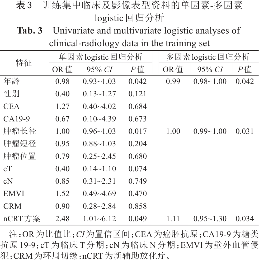 Tab. 3  Univariate and multivariate logistic analyses of clinical-radiology data in the training set