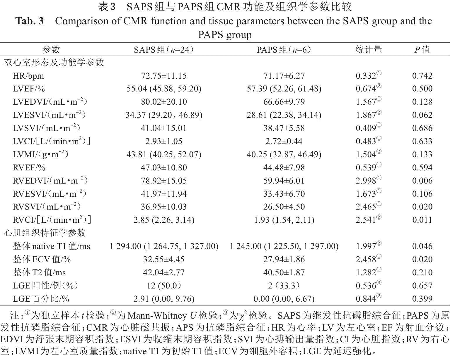 Tab. 3  Comparison of CMR function and tissue parameters between the SAPS group and the PAPS group