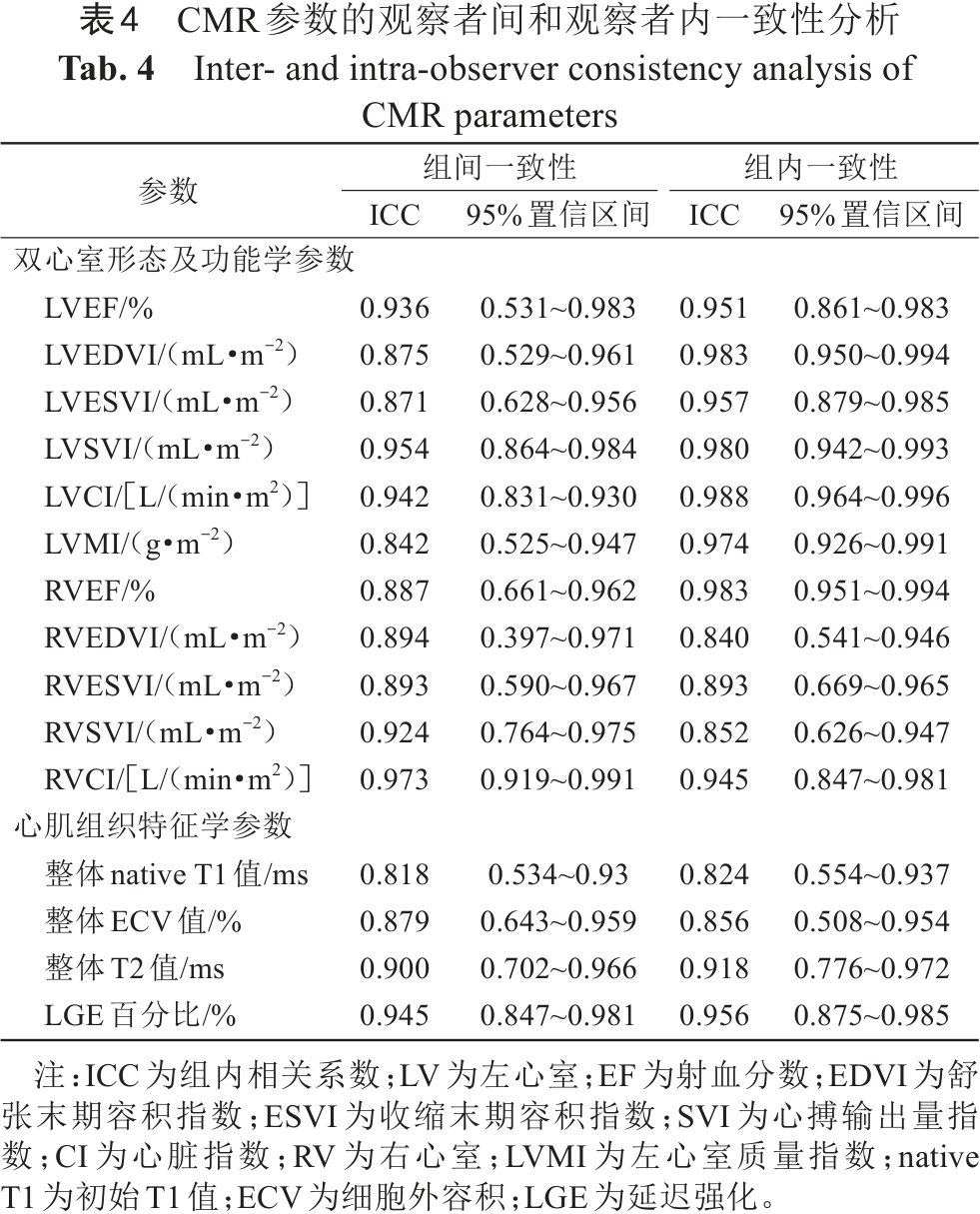 表4  CMR参数的观察者间和观察者内一致性分析