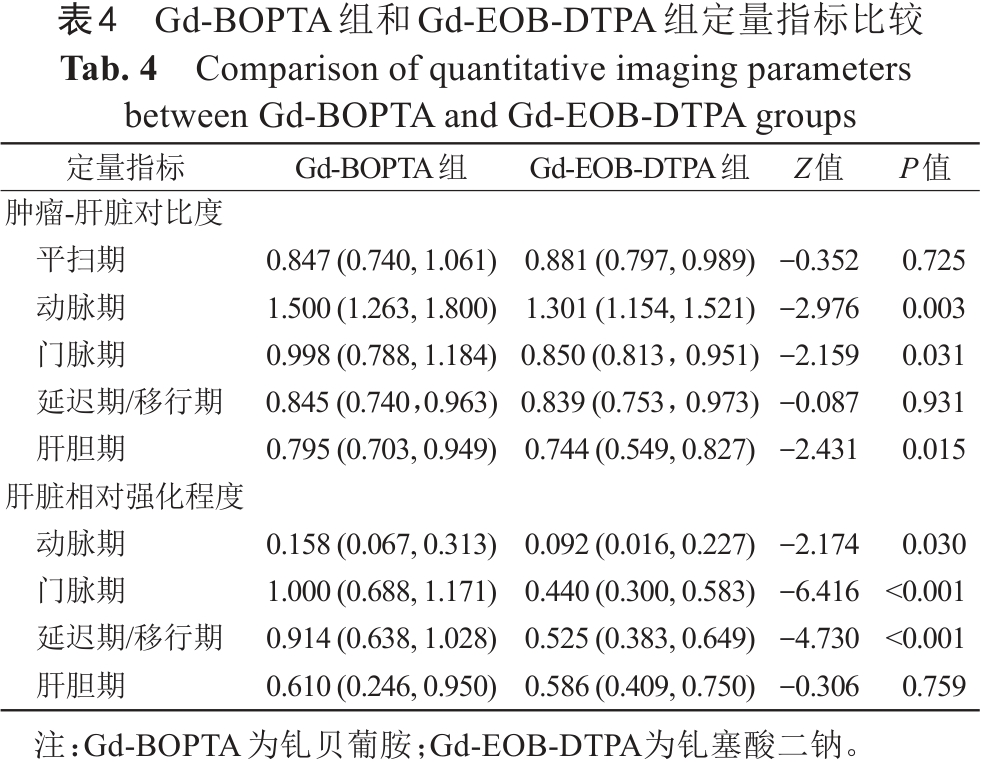表4  Gd-BOPTA组和Gd-EOB-DTPA组定量指标比较