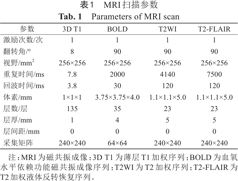 表1  MRI扫描参数
