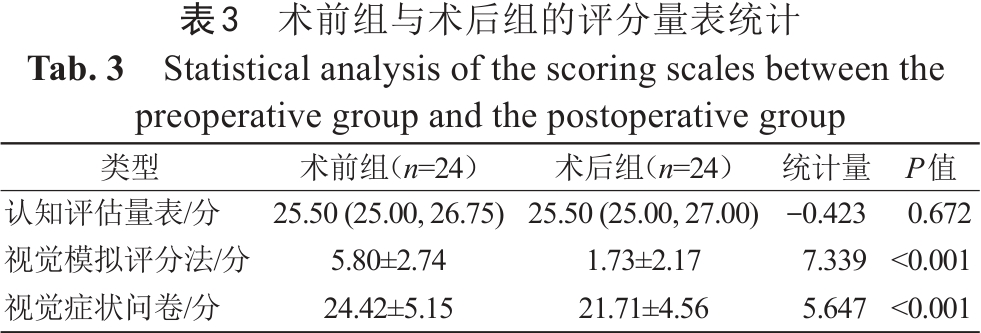 表3  术前组与术后组的评分量表统计
