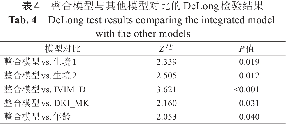 Tab. 4  DeLong test results comparing the integrated model with the other models