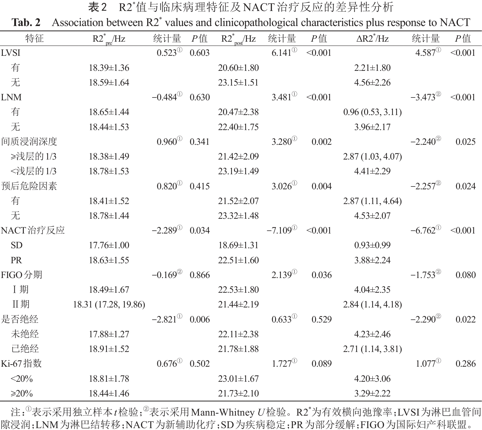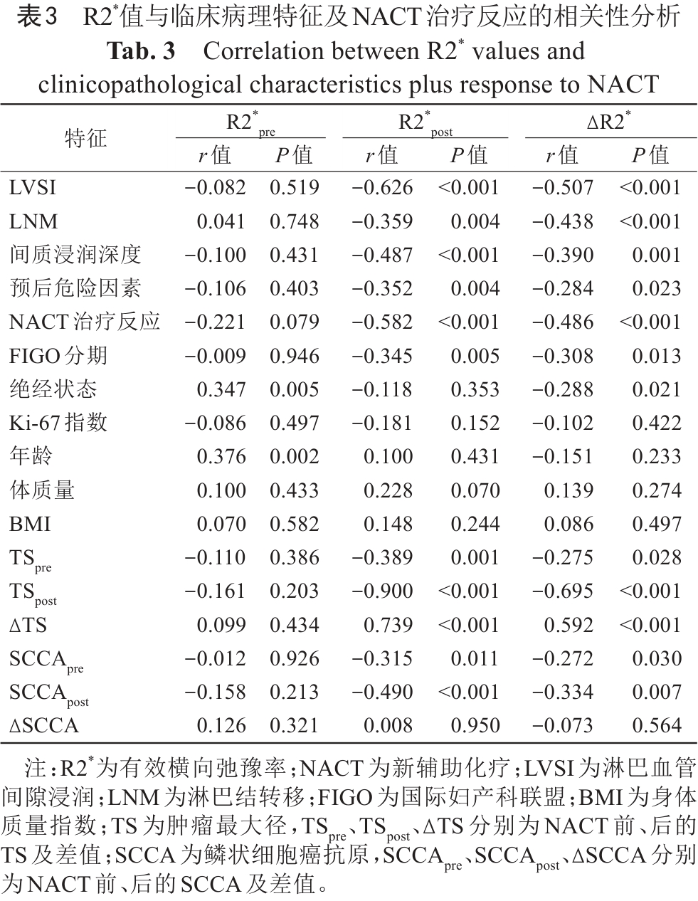 Tab. 3  Correlation between R2* values and clinicopathological characteristics plus response to NACT