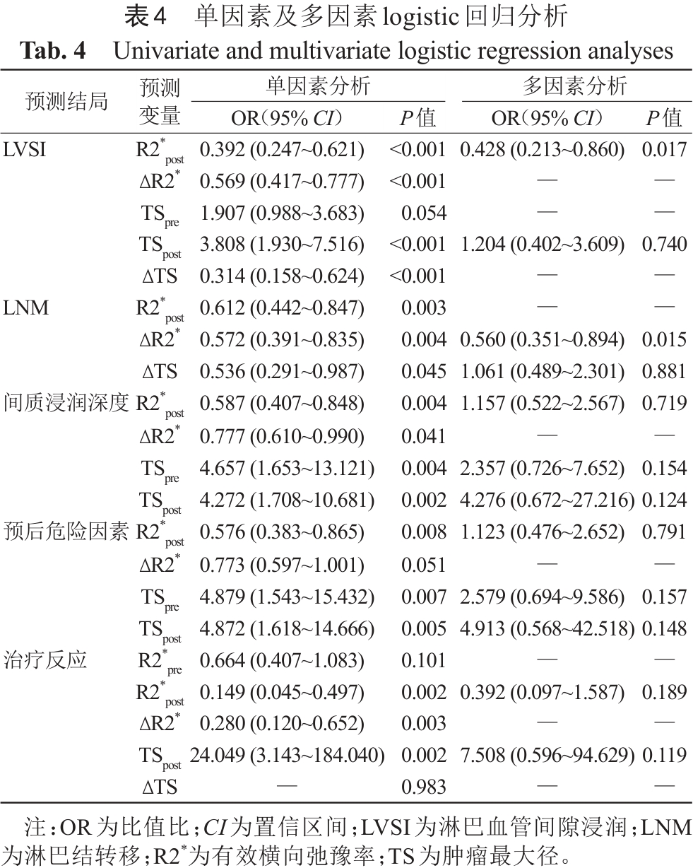 2.4 R2*值对宫颈鳞癌NACT治疗反应及预后危险因素的预测效能评估