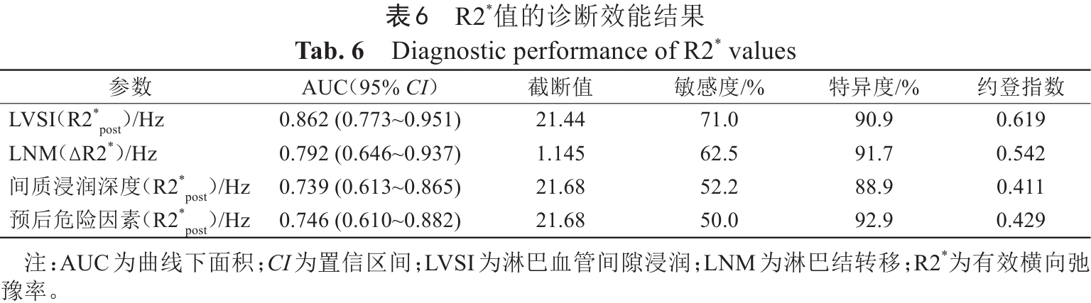 表6  R2*值的诊断效能结果