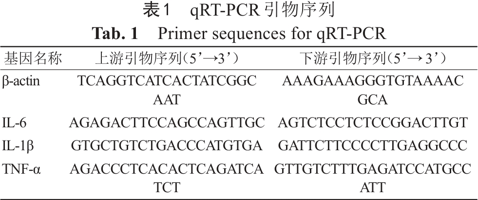 GMH后1 d随机选取GMH组及对照组大鼠各3只,深度麻醉后经心脏灌注5%PBS,取右侧纹状体组织称重后平均分为两份,一份进行蛋白免疫印迹(Western blot, WB)检测,另一份用于qRT-PCR检测。对于WB检测的脑组织,使用RIPA裂解液提取总蛋白,BCA法测定蛋白浓度,取10 μg样品进行SDS-PAGE电泳分离,然后转移至PVDF膜。膜与以下一抗在4 ℃孵育过夜:IL-6(1∶1000,proteintech,武汉),IL-1β(1∶1000,Immunoway,美国),TNF-α(1∶1000,Immunoway,美国),GAPDH(1∶5000,proteintech,武汉)。随后与HRP标记的山羊抗兔二抗(1∶1000,proteintech,武汉)室温孵育1 h。ECL化学发光试剂显影,Tanon-5200化学发光成像系统采集图像。