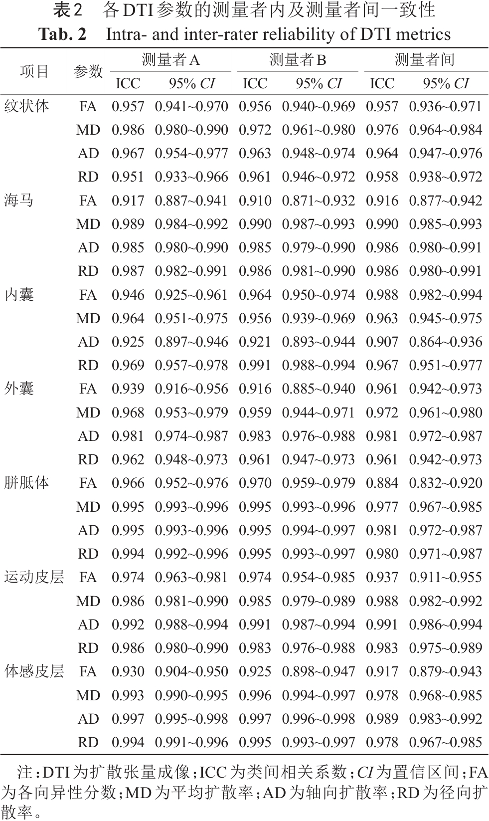 Tab. 2  Intra- and inter-rater reliability of DTI metrics