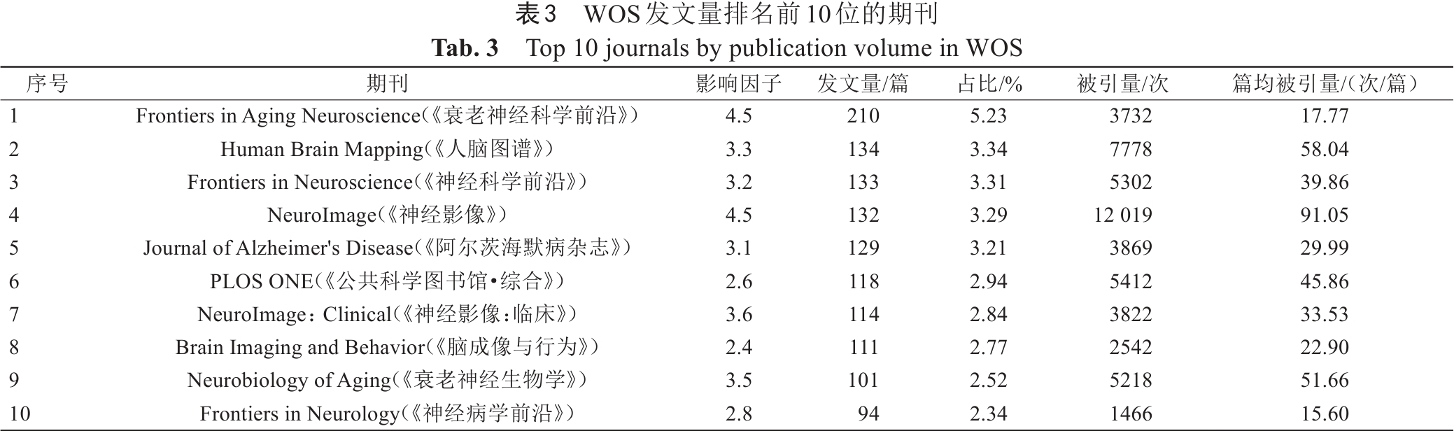 Tab. 3  Top 10 journals by publication volume in WOS