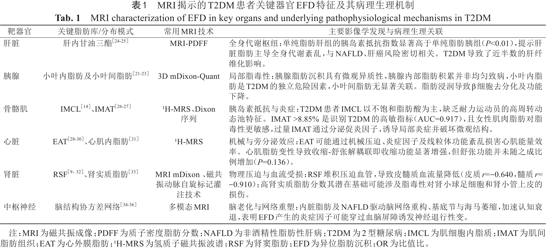 Tab. 1  MRI characterization of EFD in key organs and underlying pathophysiological mechanisms in T2DM
