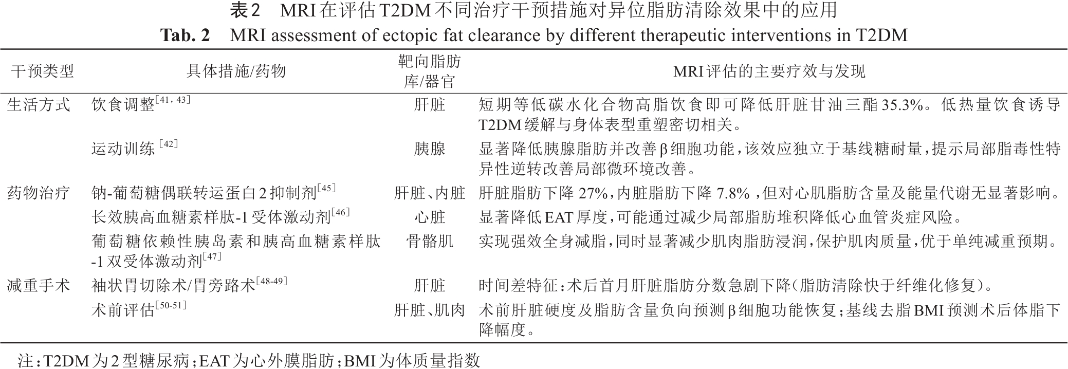 Tab. 2  MRI assessment of ectopic fat clearance by different therapeutic interventions in T2DM